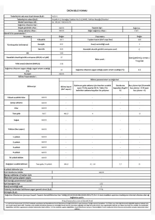 “Altus Al 376 XIE 630 LT No-Frost Çift Kapılı Buzdolabı” için yorum yapan ilk kişi siz olun Yanıtı iptal et