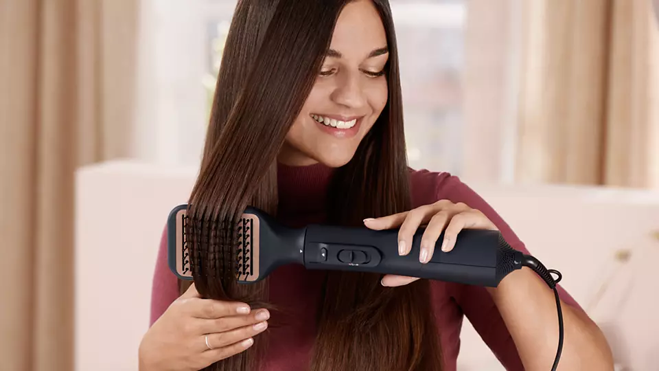 Ekstra bakım ile çok sayıda saç modeli 5 şekillendirme aparatıEşit ısı dağıtımı4 kat fazla iyon*Seramik Argan Yağı Eşit Isı Dağıtımı teknolojisi sayesinde saçın aşırı ısınması önlenirEşit Isı Dağıtımı teknolojisi aşırı ısınmaya karşı maksimum koruma sağlayarak saçlarınızın sağlıklı ve parlak görünmesine yardımcı olur.4 kat daha fazla iyonik bakım*Bu hava üflemeli saç şekillendirici, iyonik bakımla saçınızı anında canlandırır. Yüklü negatif iyonlar statik elektriği ortadan kaldırır, saça bakım yapar ve saçları açarak parlaklığını ve canlılığını arttırır. Sonuç son derece parlak, pürüzsüz ve elektriklenmeyen saçlardır.Kolay kontrol için üç esnek ısı ve hız ayarıMükemmel sonuç veren birleştirilmiş üç ısı ve iki hız ayarının keyfini çıkarın. İlgili 3 ısı ayarıyla düşük ve yüksek hız ayarı arasında seçim yapabilirsiniz: Cool, Care ve High. Esnek ayarlar, hassas ve kişiye özel bir şekillendirme için bakım sıcaklığıyla güçlü bir hava akışı sağlar.Nazik kurutma için soğuk hava ayarıSoğuk hava ayarı, düşük ısı kullanarak saçlarınızı nazikçe kurutur. Özellikle ince, kuru veya zarar görmüş saçlar için idealdir.Daha korumalı kurutma ve şekillendirme için bakım ayarı"Bakım" ayarı, optimum kurutma sıcaklığını sağlar ve aşırı ısınmaya karşı koruma sağlar. Saçlar, aynı güçlü hava akışıyla, sabit bakım sıcaklığında hızlı kurur.İpeksi saçlar için argan yağı katkılı seramik plakalarDüzleştirici, hızlı ve zahmetsiz bir şekillendirme için argan yağı katkılı seramik plakalara sahiptir. Bu plakalar saçınızda kayarak saçlarınızın ipeksi bir görünüm ve yumuşaklık kazanmasını sağlar.Mükemmel dalgalar için 30 mm boyu ayarlanabilir sert fırça30 mm'lik boyu ayarlanabilir sert fırça, kolay şekillendirme için tasarlanmıştır. Mükemmel dalgalar için fırçanın ucunu çevirin ve çıkarın.Mükemmel modeller ve dalgalar için 38 mm ThermoBrushThermoBrush, 38 mm'lik ekstra geniş bir çapa sahiptir. Bigudinin genişliği, onu düz modeller ve dalgalar için mükemmel bir şekillendirme aleti haline getirir.Odaklanmış hava akışı için daraltıcı kurutma başlığıDar şekillendirme başlığını kullanarak hassas şekillendirme veya rötuşlar için odaklı hava akışı sağlayabilirsiniz.Doğal görünümlü düz sonuçlar için palet şekilli düzleştirme fırçasıPalet şekilli düzleştirme fırçası, tek seferde doğal görünümlü düz sonuçlar elde etmenize yardımcı olmak için tasarlanmıştır.5 aksesuarlıAir Styler, 5 farklı başlık seçeneği ile doğal görünümlü düz saçlardan mükemmel dalgalara ve hacimli saç köklerine kadar farklı stiller oluşturmanızı sağlar.Saç köklerini daha fazla haciml
