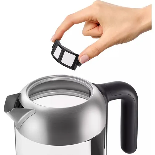 Modern ve uzun ömürlü tasarımDayanıklı, şeffaf cam ve sensör ışığı1,7 LÇıkarılabilir kapakMavi ışık göstergesi Hızlı kaynatma için yassı ısıtma yüzeyiPaslanmaz çelikten gizli ısıtma elemanı, hızlı kaynama ve kolay temizlik sağlar.Mikro gözenekli filtre, ufak kireç parçacıklarını yakalarAğza takılıp çıkarılabilir mikro gözenekli filtre, temiz su için 200 mikron kadar küçük parçacıkları yakalar.Susuz kaynamaya karşı çoklu güvenlik sistemiSu hazır olduğunda otomatik kapanma özelliği ile susuz kaynamaya karşı çoklu güvenlik sistemi.Mavi ışık göstergesiŞık ve sezgisel sensör ışığı, su ısıtıcının açık olduğunu göstermek için şeffaf cam tabana yerleştirilmiştir.Kolay okunur su seviyesi göstergesiSu seviyesi, su ısıtıcının iki yanında bulunan göstergeyle kolayca okunabilir.Sadece ihtiyacınız kadar su kaynatmanız için tek fincan göstergesiTüketicilerin sadece ihtiyaçları olan miktarda su kaynatmalarını sağlar; böylece enerji ve su tasarrufu sağlayarak çevre korumasına katkıda bulunur.Temizlik sırasında kolay erişim için çıkarılabilir kapakTamamen çıkarılabilir kapak temizlik sırasında kolay erişim sağlar.Kapak veya ağız yoluyla kolay doldurmaSu ısıtıcı, ağızdan veya çıkarılabilir kapak açılarak doldurulabilir.360° döner tabanlı kordonsuz su ısıtıcıKordonsuz su ısıtıcı, kolay kaldırma ve yerleştirme için 360° döner taban üzerinde durur.Kolay ayarlama ve saklama için kablo sarıcıTabanın altına sarılabilen kablo, her mutfak için uygun uzunluğa sahiptir ve kolayca saklanabilir. Dünya çapında 2 yıl garantiEvetTasarım ve kaplamaMalzeme filtresiNaylon filtreAna gövde malzemesiCamRenklerSiyah ve gümüşIsıtma bileşeninin malzemesiPaslanmaz çelikMenşeiÜretildiği ülke:ÇinTeknik özelliklerFrekans50-60 HzGüç1850-2200 WGerilim220-240 VHazne kapasitesi1,7 LKordon uzunluğu0,75 mAğırlık ve boyutlarÜrünün boyutları (UxGxY)146x233x248 mmAmbalajla birlikte ağırlık1,72 kgAmbalaj boyutları (UxGxY)228x228x310 mmMikro gözenekli filtreEvetÜrün ağırlığı1,15 kgSürdürülebilirlikKullanım kılavuzu%100 geri dönüşümlü kağıtAmbalaj> %90 geri dönüşümlü malzemeGenel özellikler