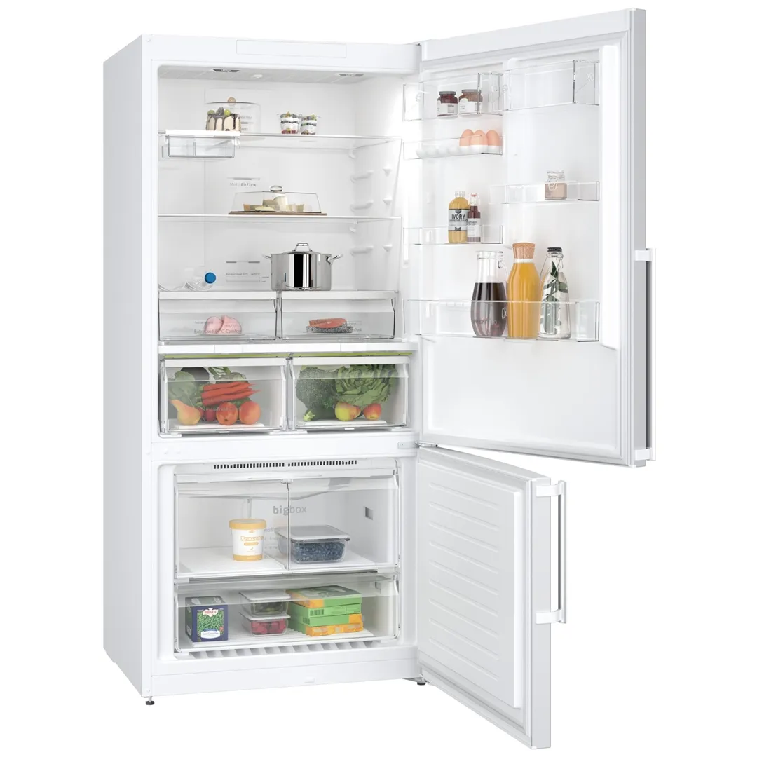 Profilo NoFrost Alttan Donduruculu XXL Buzdolabı'nın geniş saklama kapasitesi sayesinde çok alan kaplayan bol miktardaki yiyeceği kolayca saklayabilirsiniz.NoFrost teknolojisi sayesinde zaman ve enerji tüketen çözdürme işlemine gerek kalmaz.BigBox çekmecesi dondurulmuş büyük gıdalar için ekstra alan sunar.Led aydınlatma, optimum konumu sayesinde soğutucu içerisinde aydınlık bir ortam yaratır.Ayarlanabilir Cam Raf Sistemi, raflar arasında yüksekliği ayarlamanıza yardımcı olarak buzdolabınızın iç alanından esnek bir şekilde yararlanmanızı sağlar.Genel ÖzelliklerRenkHigh-glossKapı yönüSağ, değiştirilebilirKapı kolu tipiDikey kapı koluKullanma şekliDerin dondurucu sıcaklık göstergesi, Dondurucu uyarı fonksiyonu, Ekonomi modu / Tatil modu, Kapı açık kaldığında uyarı sinyali, Soğutucu sıcaklık göstergesi, Süper dondurma fonksiyonu, Süper soğutma fonksiyonuEnerji verimlilik sınıfıEYıllık ortalama enerji tüketimi307 kWh/yılSes seviyesi40 dB(A) re 1 pWSes verimllik sınıfıCSoğutucu bölümü kapasitesi479 litreDerin dondurucu bölümü kapasitesi152 litreEntegre aksesuarlar3 x YumurtalıkBoyutlarÜrün Ölçüleri (Yükseklik x Genişlik x Derinlik)1860 x 860 x 810 mmNet ağırlık108,3 kgBoyutlar KonforExtraFreshEvetExtraFresh ComfortEvetSüper SoğutmaEvetSüper dondurmaEvetŞişe rafı tipiPlastik şişelikBigBoxEvetVarioZoneEvetEasyAcces cam rafEvetEcoModeEvetBasic touch controlhayırMutlı-Flow hava kulesiEvet Buzdolabı raf adedi3Soğutucu bölümü ayarlanabilir raf adedi2Yumurtalık adedi3Buzdolabı kapı rafı adedi4 Yıldız sınıfı4Elektrik kesintisinde saklama süresi (h)17 hDondurucu bölümü çekmece adedi2Dondurucu kanatçık sayısı0Buz kalıbı adedi2Home ConnectHome ConnecthayırKamerahayırDiğer ÖzelliklerAlttan donduruculu BuzdolabıParlak beyaz dış yüzey kapılarBD3086WECNGenel BilgilerNo-FrostToplam hacim: 631 lEnerji verimlilik sınıfı: ESes seviyesi: 40 dB(A) re 1 pWSes sınıfı: CDijital LEDBoyutlar (YxGxD): 186 x 86 x 84 cmSoğutucu BölümüSoğutucu bölmesi hacmi: 479 l2 adet nem kontrollü ExtraFresh çekmecesi – Meyve ve sebzelerin tazeliği ve vitaminleri 2 kata kadar daha uzun süre korunur.2 adet sıcaklık kontrollü ExtraCold <> 0°C Comfort çekmecesi – Et ve balık gibi yiyecekler daha uzun süre taze kalır.2 adet yüksekliği ayarlanabilir cam raf, toplam 3 adet emniyetli cam raf3 adet emniyetli cam raf (2 adet yüksekliği ayarlanabilir EasyAccess cam raf)6 kapı rafı2 adet tereyağ ve peynir bölmesiAirFresh koku filtresiLMSSMulti Airflow ile homojen soğutmaÇıkarılabilir çok amaçlı saklama bölmesiPlastik şişelikYumurtalıkDerin Dondurucu BölümüDerin dondurucu bölmesi