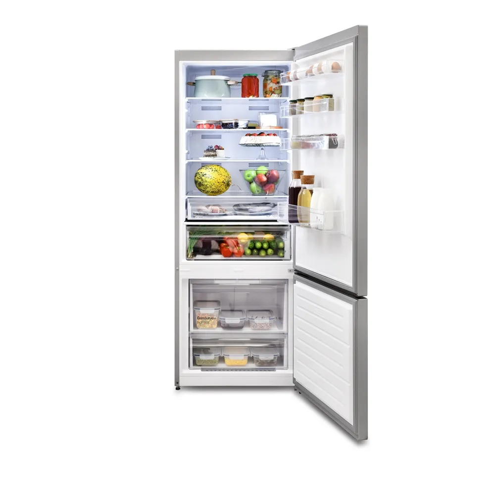 Wi-Fi TeknolojisiTaze Hava TeknolojisiHareketli Cam RafAkıllı Sensör TeknolojisiÇok Yönlü Soğutma SistemiÜrün TipiDondurucu Altta No-Frost BuzdolabıÜrün Rengi InoxToplam Net Hacim (Lt) 471Ürün Boyutları (cm) (YxGxD) 186x70x71,2Yükseklik (cm) 186Genişlik (cm) 70Derinlik (cm) 71.2Enerji Sınıfı EEnerji Tüketimi (kWh/Yıl) 266Ses Seviyesi (dBA) 41Elektrik Tüketimi Kwh24 Saat0.728Soğutma Tipi No-FrostTeknolojiWi-FiVarTaze Hava TeknolojisiVarÇok Yönlü Soğutma SistemiVarOtomatik Sıcaklık KontrolüVarKokuları Birbirine Karıştırmayan SistemVarKahvaltılık Bölmesi (0?C Bölmesi)VarSesli Kapı Açık AlarmıVarDeğiştirilebilir Kapı Açılış YönüVarHareket Kolaylığı Sağlayan TekerleklerVarHareketli Cam RafVarAkıllı Sensör TeknolojisiVarNem Kontrol DüğmesiVarRaylı Sistemle Açılabilen Sebzelik BölmesiVarTemperli Cam Raflar (Kırılmaya Dayanıklı)VarKontrol SistemiEkran TipiLed DisplayElektronik Kontrol PaneliVarEkonomi ModuVarParti Modu (İçecek Soğutma)VarTatil ModuVarÇocuk KilidiVarEkran KorumaVarHızlı Soğutucu ModuVarHızlı Dondurucu ModuVarSoğutucuSoğutucu Bölme Net Hacim (Lt)357Soğutucu Raf TipiCam RafSoğutucu Bölme Raf Sayısı5Ayarlanabilir Cam RafVarSoğutucu Bölme Kapı Raf Sayısı4DondurucuDondurucu Bölme Net Hacmi lt115Dondurucu Bölme Çekmece Sayısı2Dondurma Kapasitesi (kg/24saat)5.2Dondurucu Bölme Yıldız Sayısı4AydınlatmaSoğutucu Aydınlatma Tipi Yandan Led AydınlatmaDiğer BilgilerÜrün Kodu 20268346Ücretsiz Nakliye VarÜcretsiz Montaj VarÜcretsiz Garanti Süresi 3 Yıl Garanti